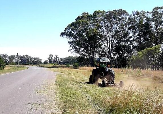 Personal de la Dirección de Espacios Verdes realiza cortes de pasto y  mantenimiento del pasaje  Carlos Gardel, similares tareas se continuarán hacia  el sector de la Escuela  Agraria, Canal 9 y la Picasa, terminado en ruta 63.