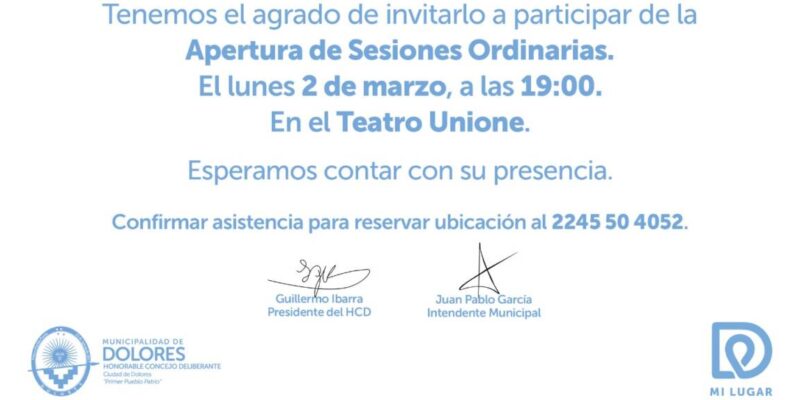 El próximo lunes 2 de marzo, a las 19 Hs en el Teatro Unione, se llevará a cabo la apertura de sesiones ordinarias del Concejo Deliberante.