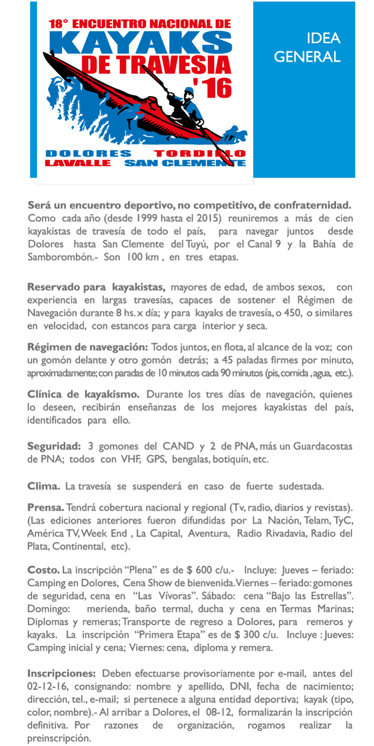 La inscripción y el reglamento estarán a cargo del Club de Pesca, en Lamadrid e Intendente Tamagno. Para información llamar al celular 022451542533. La inscripción para los pescadores locales se cerrará dos días antes y tiene un valor de $ 100 para los mayores y $ 50 para los menores. Habrá servicio gastronómico en el Canal 9 y en Plaza Castelli.