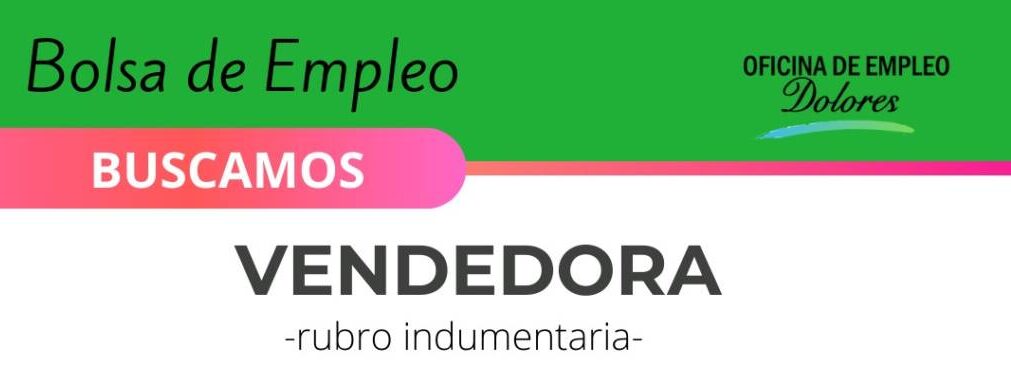 La Oficina de Empleo del Municipio informa sobre nuevas ofertas laborales. Se necesita vendedora para comercio rubro indumentaria.