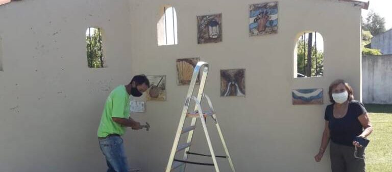 Personal de la Dirección de Espacios Verdes trabajó sobre el monumento de la Plaza del Bicentenario que se encuentra ubicado en la calle Selva y Brughetti, colocando placas de cerámica realizadas por alumnos del 3 año Polimodal del Instituto Paula Robles, junto a alumnos y exalumnos del Taller Municipal de Cerámica a cargo de la Profesora María Laporte.