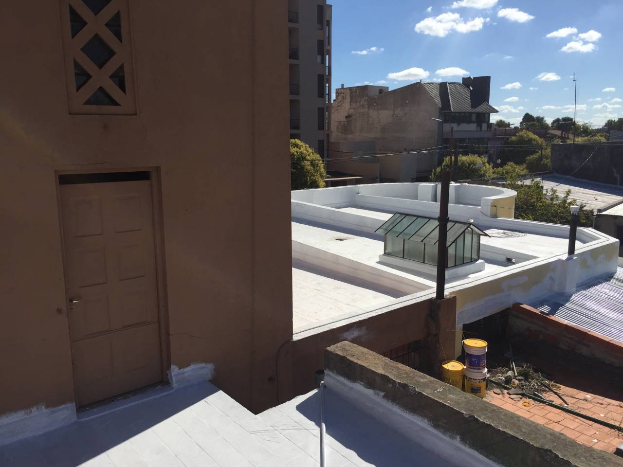 En la parte interior se realiza trabajo de pintura en la totalidad del edificio. Mantenimiento de la calefacción, acondicionamiento general y se trabaja en la loza del edificio para evitar filtraciones.