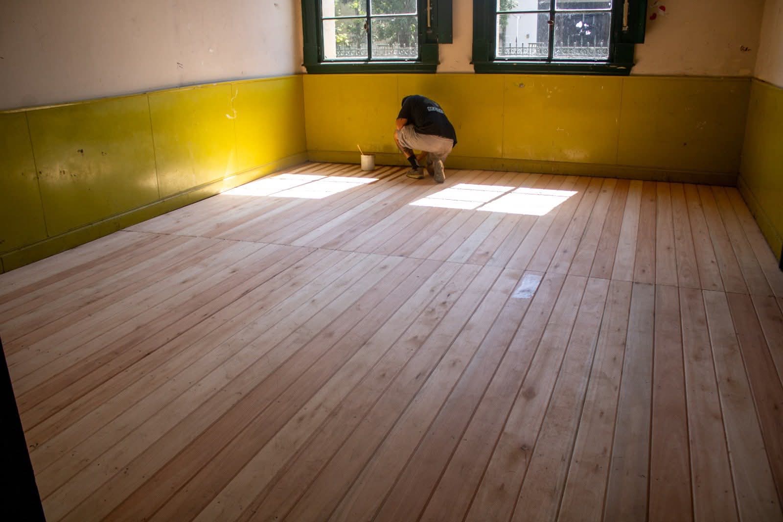 El Municipio de Dolores, en un trabajo articulado con el Consejo Escolar, avanza con una importante obra de recambio y reparación de pisos en el Colegio Nacional, un edificio emblemático de la ciudad y parte fundamental de su patrimonio cultural e histórico.