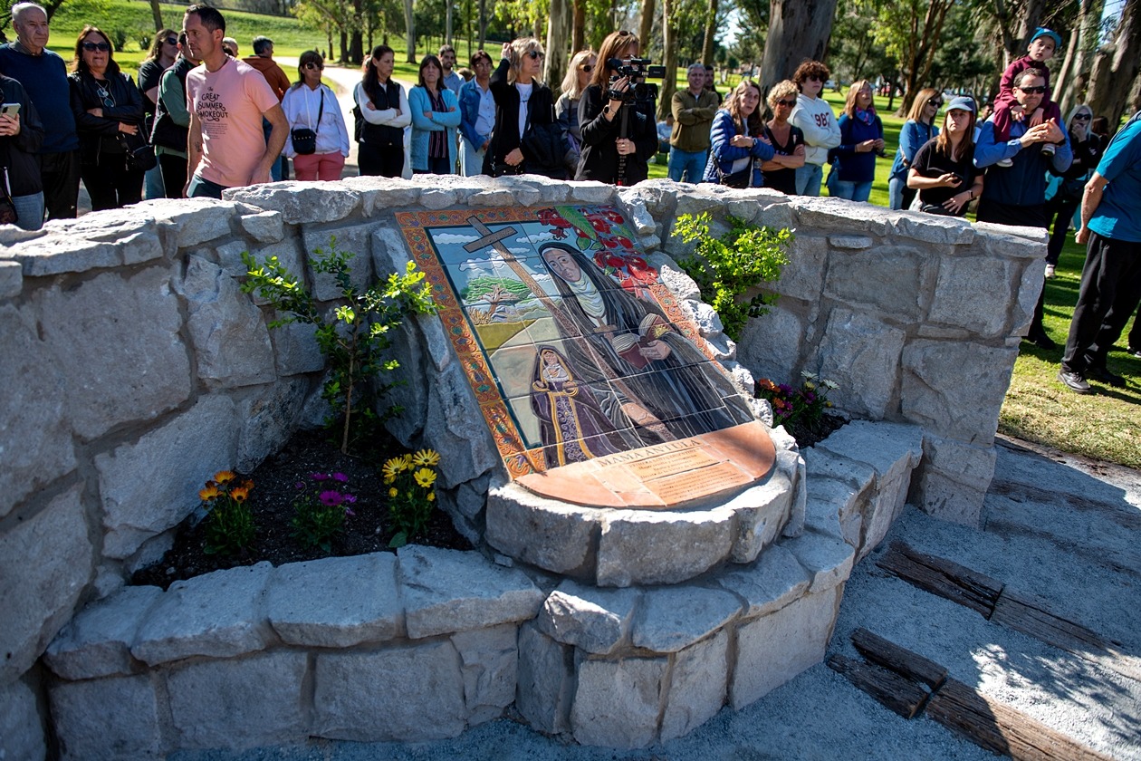 La artista dolorense Ines Cademartori fue la encargada de diseñar y llevar adelante esta obra en homenaje a Mamá Antula en el Parque Libres del Sur.