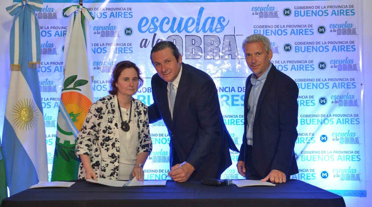 Del anuncio también participaron el Ministro de Educación de la Nación, Nicolás Trotta, la Directora General de Cultura y Educación bonaerense, Agustina Vila, el Intendente local Gustavo Menéndez y jefes comunales de la Provincia.