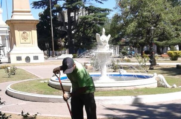 Integrantes de la Dirección de Espacios Verdes continúan con las tareas de mantenimiento de los espacios públicos y municipales.