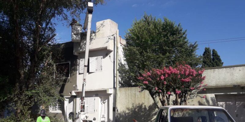 Personal del Aérea de Espacios Verdes está realizando tareas de limpieza de luminarias y corte de ramas.