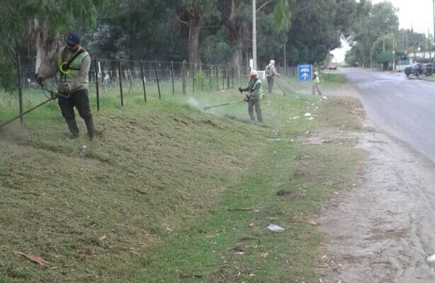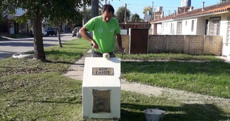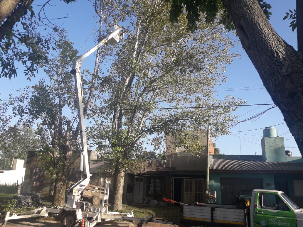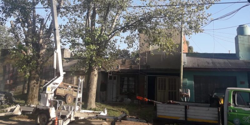 Personal de la Dirección de Espacios Verdes trabaja sobre calle Brandsen, en dos ejemplares de álamo que están ocasionando daños a la propiedad, con destrucción de paredes y veredas. Las plantas serán extraídas en los próximos días.