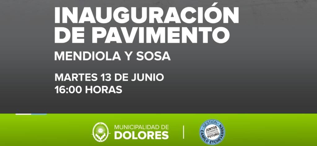 El Intendente Camilo Etchevarren, junto a los vecinos, inaugurará pavimento en calles Mendiola y Sosa, en el Barrio Juan Roncoroni (Compartir 3 y 4), el martes 13 de junio a las 16.00 horas.