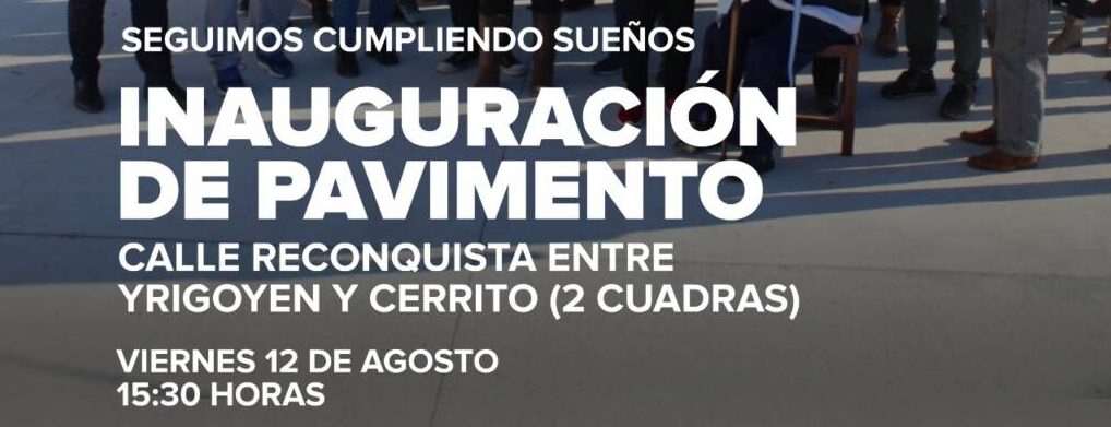 Junto a los vecinos el Intendente Camilo Etchevarren, inaugurará pavimento el viernes 12 de agosto a las 15.30 horas. Las dos cuadras realizadas por la cuadrilla de hormigón municipal corresponden a calle Reconquista entre Yrigoyen y Cerrito.