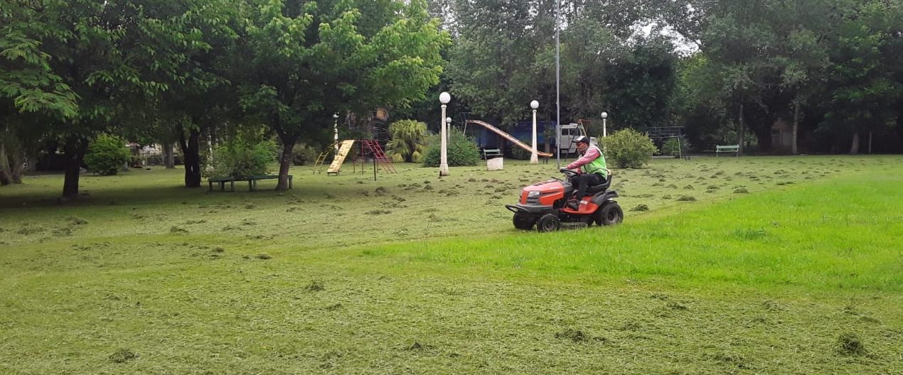 Personal de la Dirección de Espacios Verdes continúa con el mantenimiento en Sevigné, donde se trabajó en las dos plazas de la localidad, en las veredas, accesos y calles.