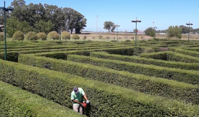 Continuando con el Programa Dolores Ciudad Verde que lleva adelante el Intendente Camilo Etchevarren, personal de la Dirección de Espacios Verdes realizó trabajos de mantenimiento en el laberinto que se encuentra en el Paseo de la Guitarra. El año pasado se hizo un recambio importante de plantas de ligustrinas y buxus. Ese sector del parque es de una hectárea de extensión en el cual se efectúa el control de hormigas, riego por goteo, poda y corte de pasto. Próximamente se instalará la iluminación, se pintará el puente y el mirador.
