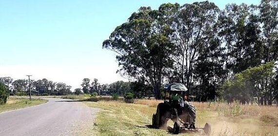 Personal de la Dirección de Espacios Verdes realiza cortes de pasto y  mantenimiento del pasaje  Carlos Gardel, similares tareas se continuarán hacia  el sector de la Escuela  Agraria, Canal 9 y la Picasa, terminado en ruta 63.