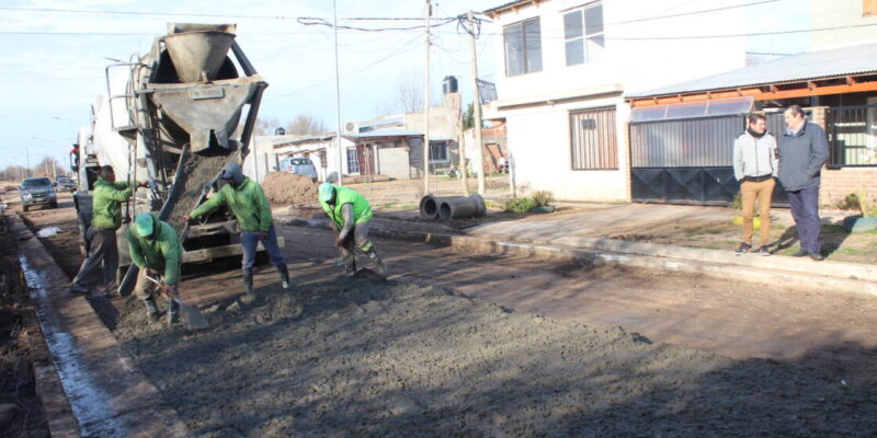El Intendente Camilo Etchevarren, recorrió los trabajos de pavimentación que se están realizando en calle Capiel, entre Aristóbulo del Valle y Sarmiento