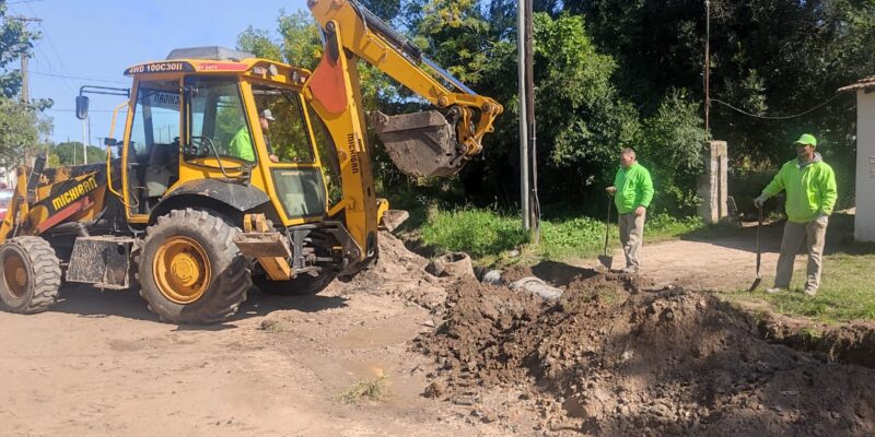 Con personal y máquinas de la Secretaría de Obras Públicas, se realizan limpieza de desagües y recambio de tubos en calle Paz entre Solís y Lincoln.