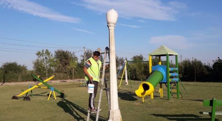 Desde la Dirección de Espacios Verdes se llevan a cabo tareas de pintura en juegos y columnas de iluminación en Plazas Congreso  de Tucumán y Negri.
