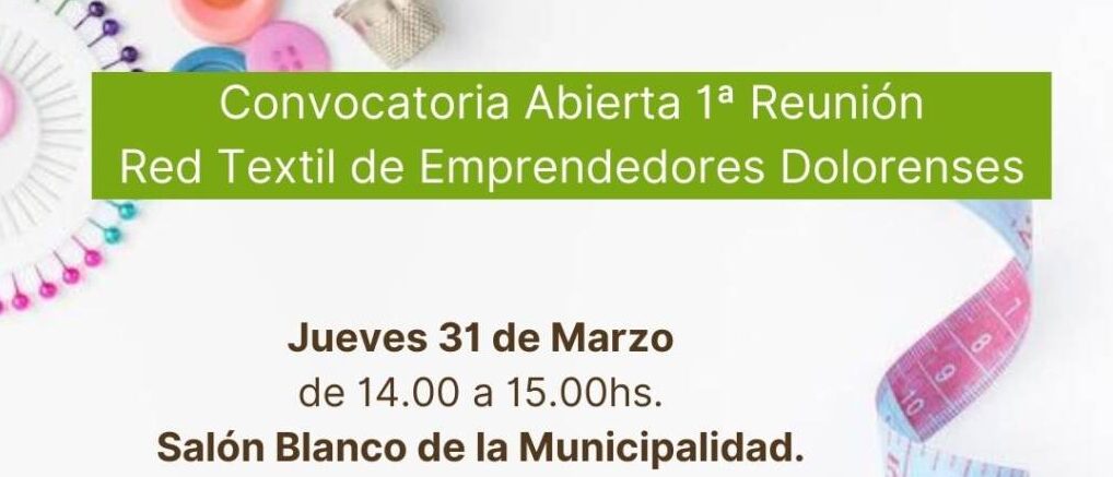 La Secretaría de Promoción y Desarrollo Productivo te invita a participar de la primera reunión  del año de la  Red de Emprendedores Textiles dolorenses que se realizará el jueves 31 de marzo a las 14.00 horas en el Salón Blanco de la Municipalidad de Dolores.
