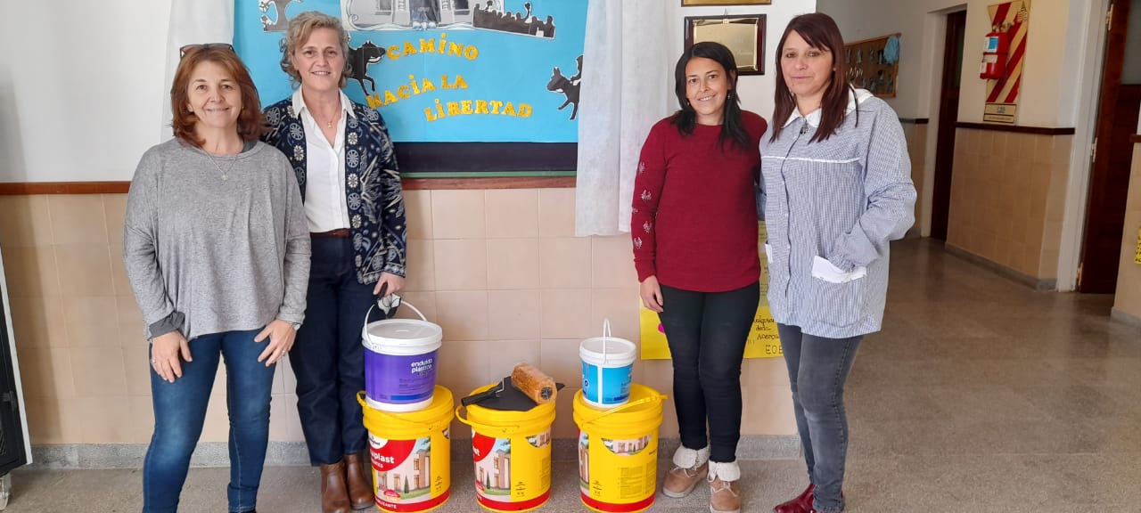 La Secretaria de Educación María Esther Larregle, la Presidenta del Consejo Escolar Laura Clavero y la Consejera Escolar María Alejandra Fossati, visitaron el Jardín de Infantes Nº 905, donde fueron recibidos por la Directora Mónica Cuello, a quien le hicieron entrega de pintura que será destinada a los paredones exteriores de la institución.