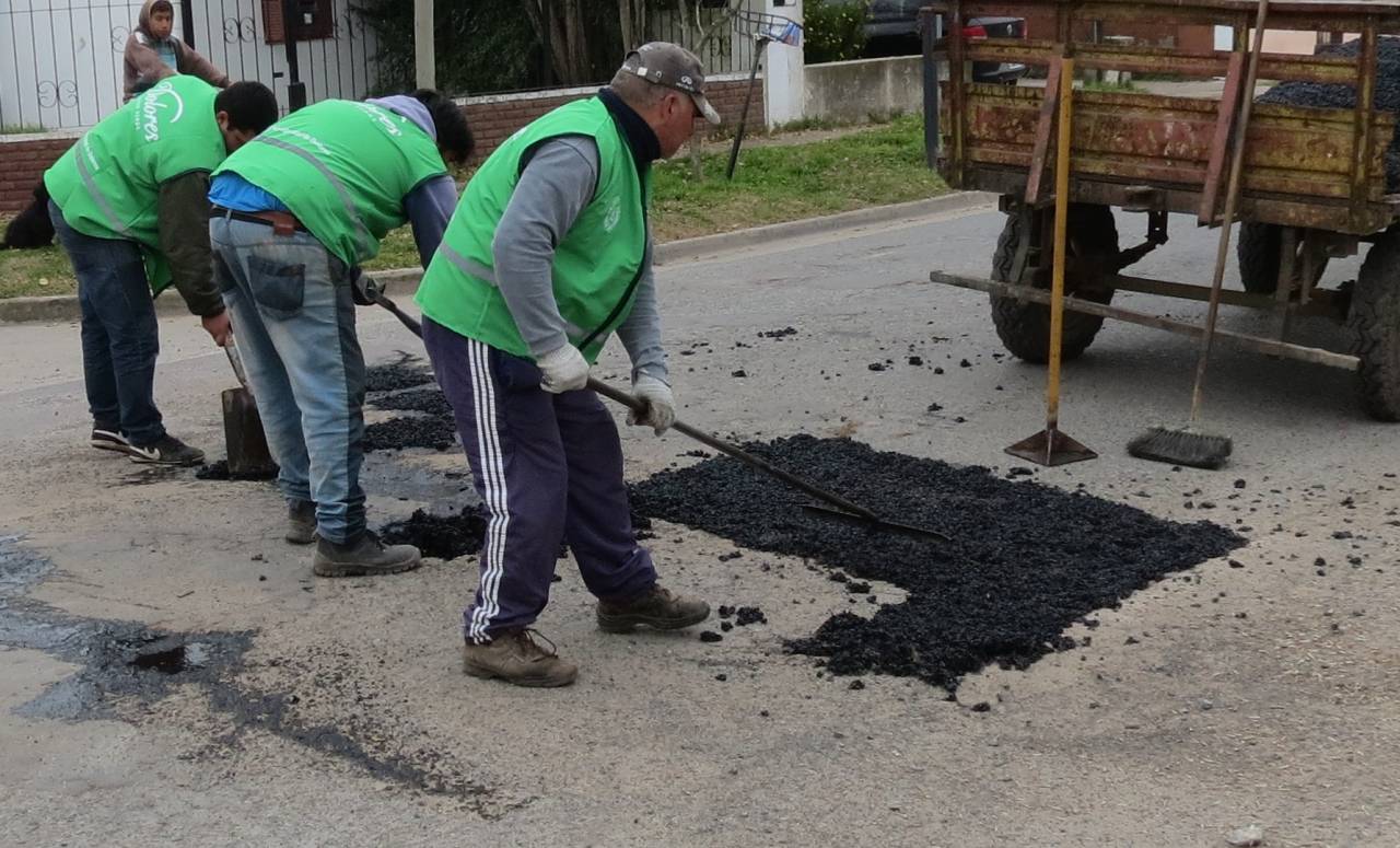 La cuadrilla que realiza trabajos de bacheo dependiente del área de Obras Públicas reparó el pavimento en calles Alvear y Montes, Balcarce y Rauch, Balcarce al 300 y al 400, Ameghino y Alberdi, Lamadrid y Carmona.