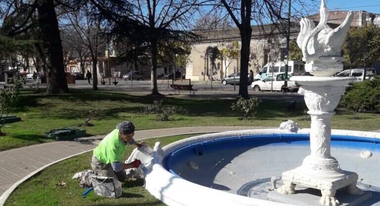 Se continúa con el mantenimiento de los distintos espacios públicos, en el marco del Programa Dolores Ciudad Verde que lleva adelante el Intendente Camilo Etchevarren. Integrantes de Espacios Verdes realizaron trabajos de pintura en fuentes, monolitos, placarios y bancos de la Plaza Castelli.